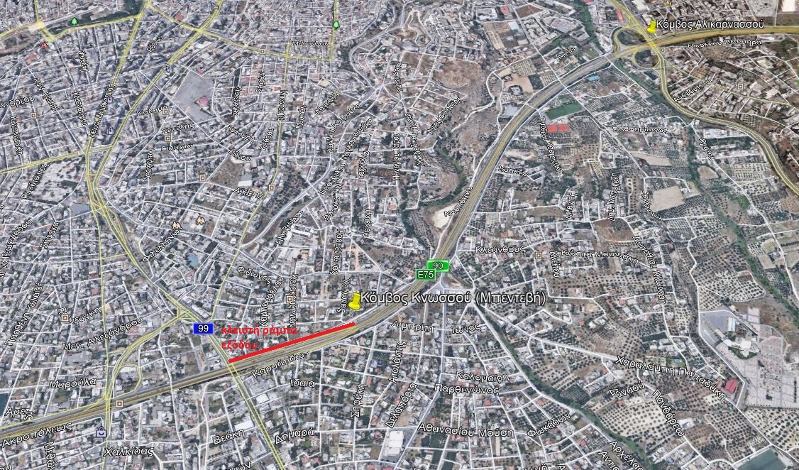 Συγκεκριμένα την Τετάρτη 18-11-2020 από ώρα 8.00π.μ. έως 18.00 μ.μ. θα είναι κλειστή η έξοδος από τον ΒΟΑΚ προς τη Λεωφόρου Κνωσσού προκειμένου να εκτελεστούν εργασίες ασφαλτόστρωσης επί του ΒΟΑΚ.Η κυκλοφορία θα διεξάγεται από το μη αποκλεισμένο ρεύμα κυκλοφορίας και η είσοδος προς Ηράκλειο θα γίνεται από τον κόμβο Αλικαρνασσού. Παρακαλούνται οι οδηγοί των οχημάτων να τηρούν την εγκεκριμένη εργοταξιακή σήμανση.
