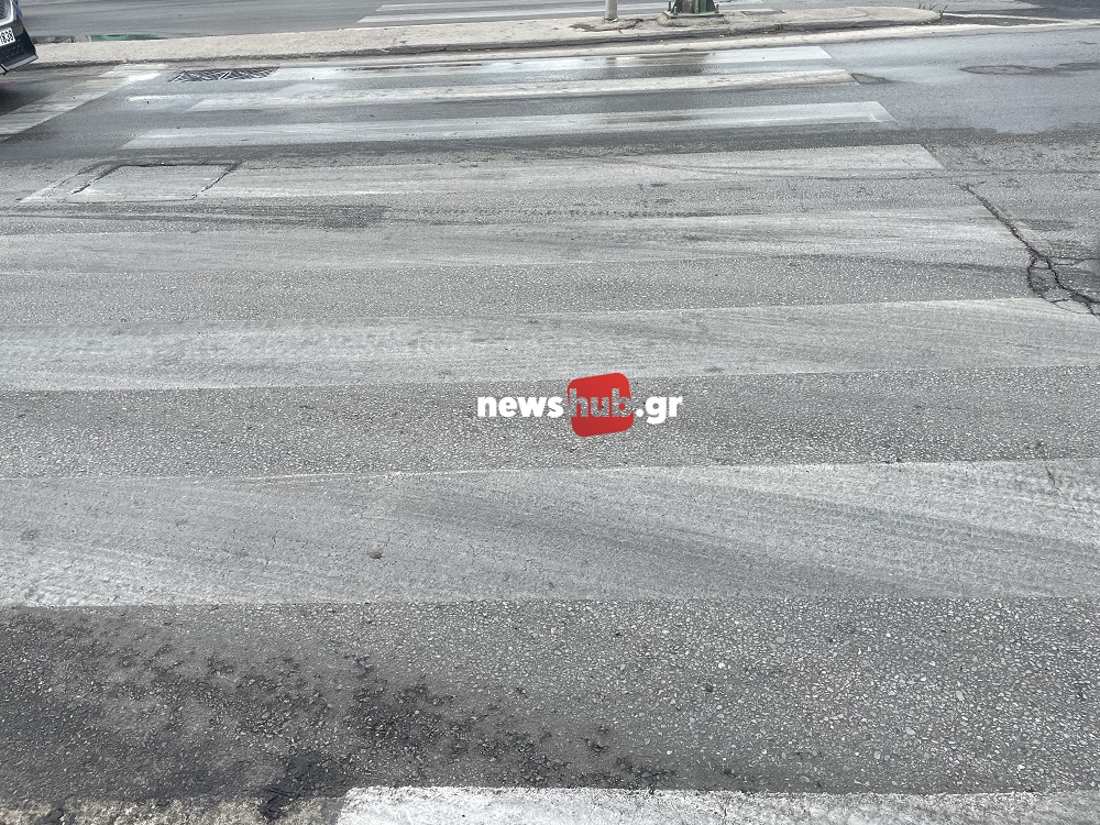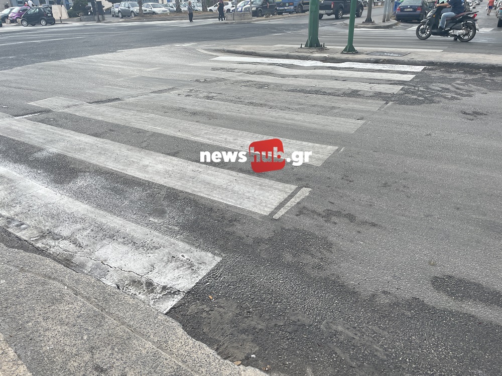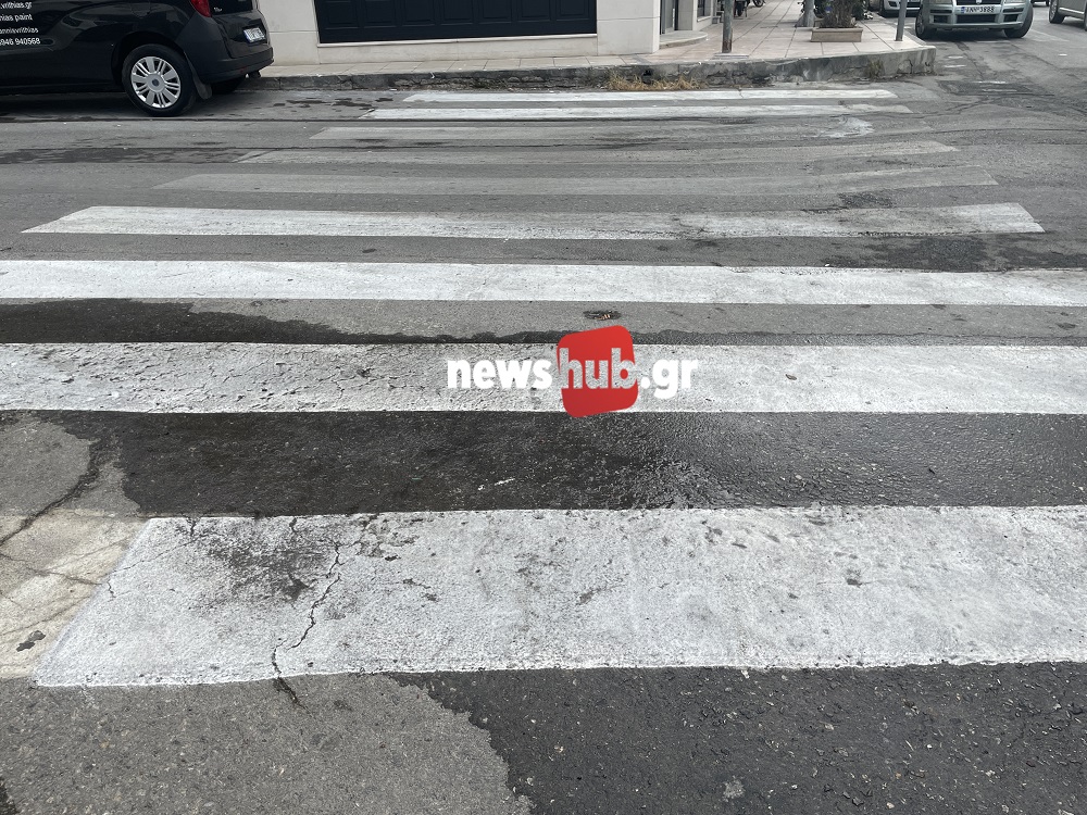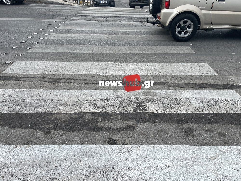 Το ότι πρόκειται για φρεσκοβαμμένες διαβάσεις πεζών το καταλαβαίνει κανείς από το έντονο λευκό χρώμα τους στις άκρες, εκεί όπου δεν κινούνται οχήματα