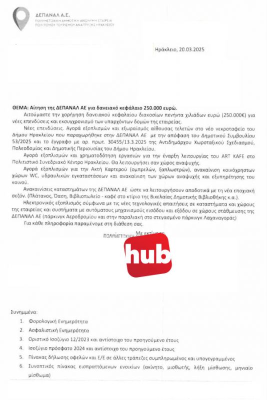 Σε διαδικασία δανειακής χρηματοδότησης μπαίνει η ΔΕΠΑΝΑΛ, καθώς σύμφωνα με αποκλειστικές πληροφορίες του newshub.gr η Εταιρεία του Δήμου Ηρακλείου, δε γλυτώνει το... δάνειο.