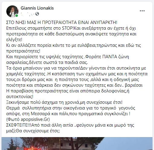 Με ανάρτηση του ο κ. Λιονάκης αναφέρει: