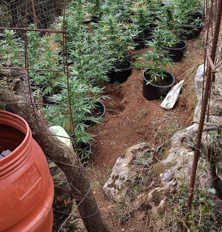 Κατά τη διάρκεια της επιχείρησης εντοπίστηκαν σε τρεις (3) διαφορετικές τοποθεσίες ενενήντα εννέα δενδρύλλια κάνναβης, όπου καλλιεργούνταν επιμελώς ευρισκόμενα στο στάδιο της ανάπτυξης ύψους έως 1 μέτρο, τα οποία εκριζώθηκαν και κατασχέθηκαν. Ο εντοπισμός των φυτειών έγινε από επίγειες αστυνομικές δυνάμεις με την συνδρομή τεχνικών εναέριων μέσων (drones).