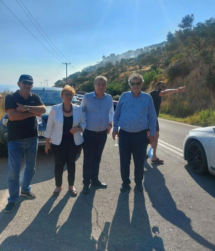 Μαζί με τον Δήμαρχο Αγίου Βασιλείου Γιάννη Ταταράκη, την Αντιπεριφερειάρχη Ρεθύμνου Μαίρη Λιονή και τον Περιφερειακό Σύμβουλο Ρεθύμνου Νίκο Μανουσάκη, ο Περιφερειάρχης Κρήτης βρέθηκε στο μέτωπο της πυρκαγιάς, όπου εξελίσσεται μεγάλη επιχείρηση κατάσβεσης.