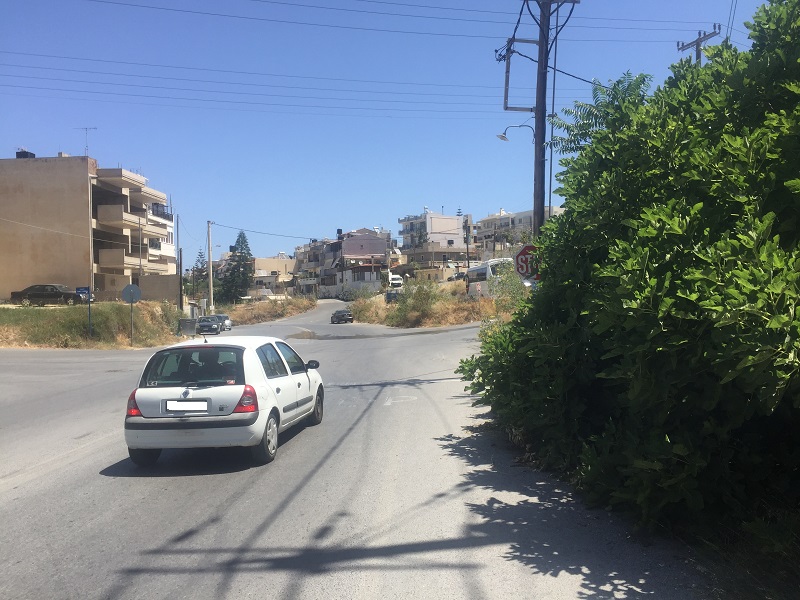 Η σήμανση του Stop βρίσκεται επί της οδού Καστρινάκη χωρίς ορατότητα, όπως θα διαπιστώσετε και στις φωτογραφίες, με αποτέλεσμα οι διερχόμενοι οδηγοί μόλις που προλαβαίνουν να διακρίνουν την σήμανση.
