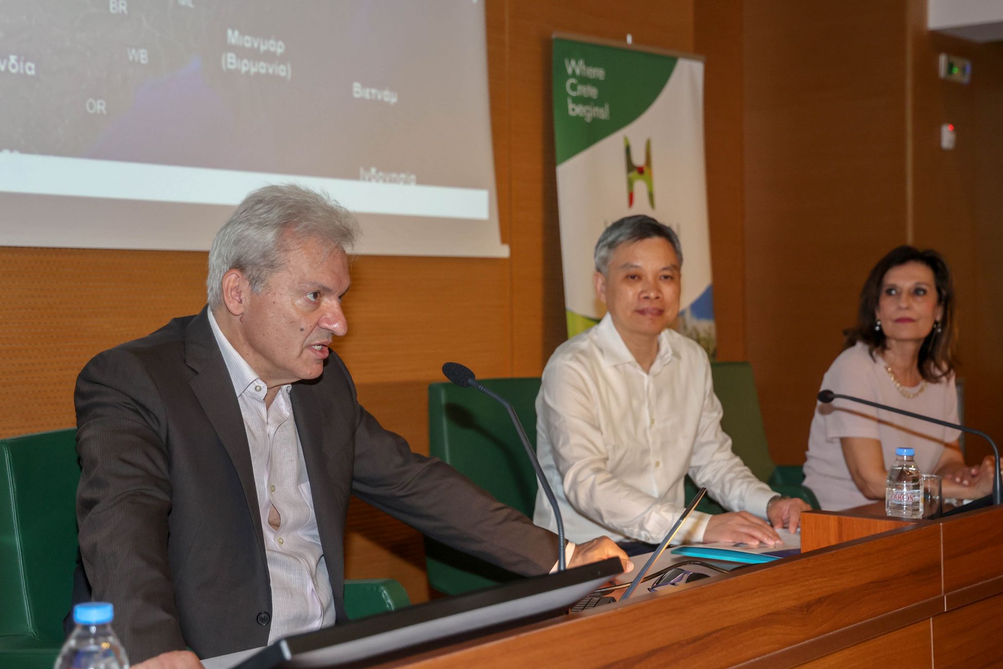 Η νέα σύσκεψη εργασίας πραγματοποιήθηκε με εκπροσώπους της Κινεζικής πόλης Hangzhou, μιας πόλης των 12 εκατ. κατοίκων που βρέθηκαν στο Ηράκλειο στο πλαίσιο συνεργασίας με το Αρχαιολογικό Μουσείο Ηρακλείου, με τον Δήμαρχο Ηρακλείου να παρουσιάζει τα δεδομένα του Δήμου, τις προοπτικές και το όραμα της Δημοτικής Αρχής για το Ηράκλειο του μέλλοντος.