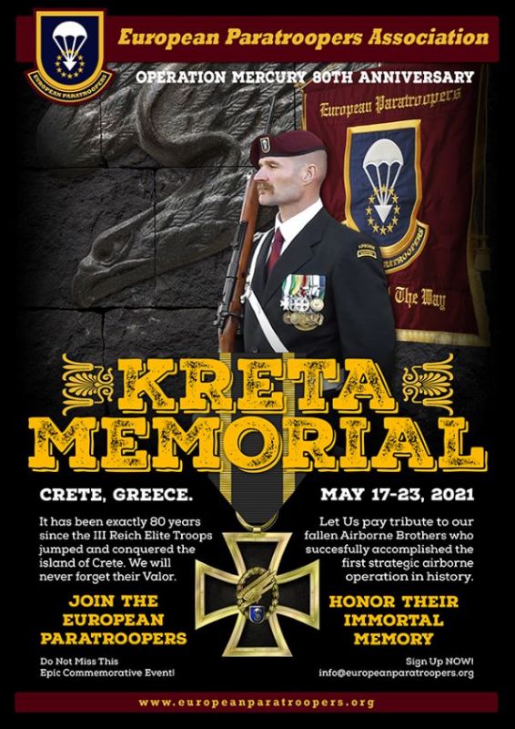 Σειρά τιμητικών εκδηλώσεων προς τους Γερμανούς αλεξιπτωτιστές που σκοτώθηκαν στη μάχη της Κρήτης το 1941 σχεδιάζει να διοργανώσει η οργάνωση Ευρωπαϊκή Ένωση Αλεξιπτωτιστών (European Paratroopers Association) το Μάιο που συμπληρώννται 80 έτη από τη Μάχη.