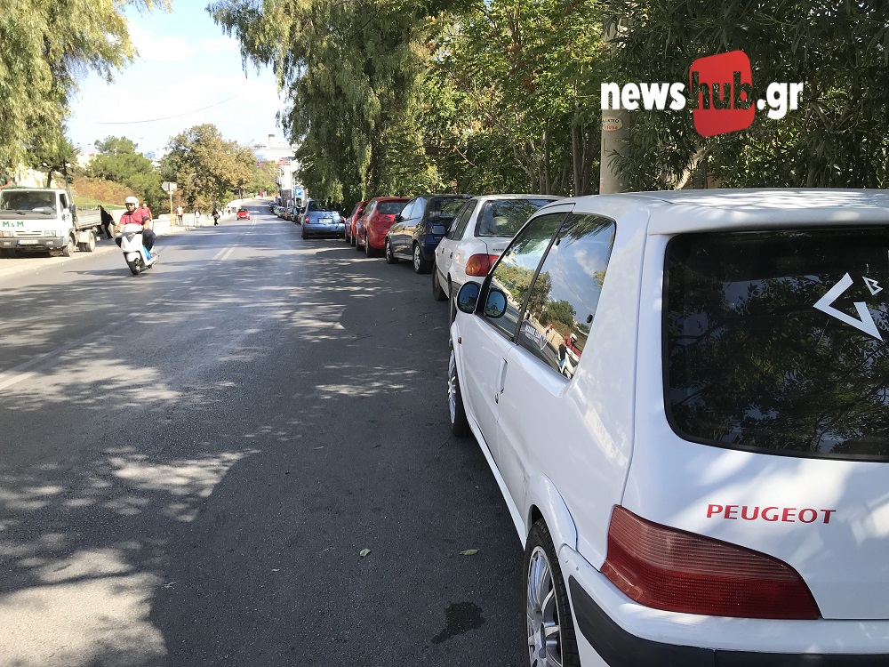 Κλειστό από τα παρκαρισμένα αυτοκίνητα είναι κι ένα τμήμα της καθόδου της Λ. Ικάρου, τα οποία προφανώς δεν βρίσκουν πουθενά αλλού δωρεάν χώρο για να σταθμεύσουν.