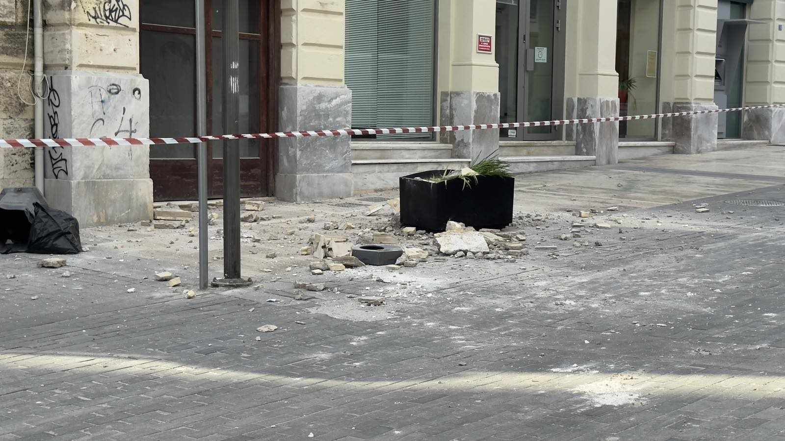 Νωρίεται το πρωί, σε αυτοψία προχώρησε στο σημείο όπου έπεσε τμήμα της αρχιτεκτονικής του κτιρίου στον πεζόδρομο της 25ης Αυγούστου, ο Δήμαρχος Ηρακλείου κ. Αλεξης Καλοκαιρινός.