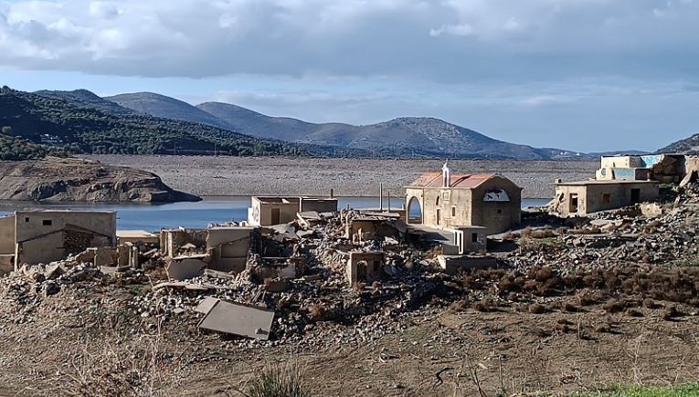 Αποτέλεσμα της πολύ χαμηλής στάθμης του νερού του φράγματος, είναι το χωριό που είχε χαρακτηριστεί ως η «Ατλαντίδα της Κρήτης» και το οποιο είχε σχεδον χαθεί κάτω από την επιφάνεια του νερού, να είναι πλέον εκτός αυτου (ΔΕΙΤΕ ΕΔΩ).