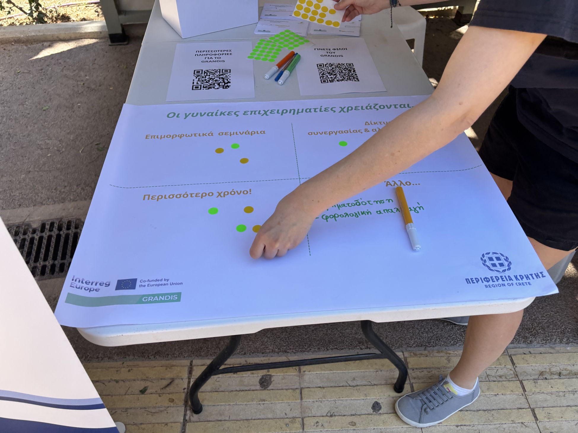 Για το έργο ενημέρωνε, το πρωί της περασμένης Παρασκευής από το περίπτερο της Περιφέρειας, η συνεργάτης του έργου εκ μέρους της Περιφέρειας Κρήτης κα. Ξένια Κριτσωτάκη. Μάλιστα, με διαδραστικό τρόπο, οι επισκέπτες είχαν την ευκαιρία να καταθέσουν τις απόψεις και τις προτάσεις τους σχετικά με τις ανάγκες στήριξης της γυναικείας επιχειρηματικότητας, συμβάλλοντας ενεργά στη διαμόρφωση πολιτικών με βάση τις πραγματικές ανάγκες της κοινωνίας.