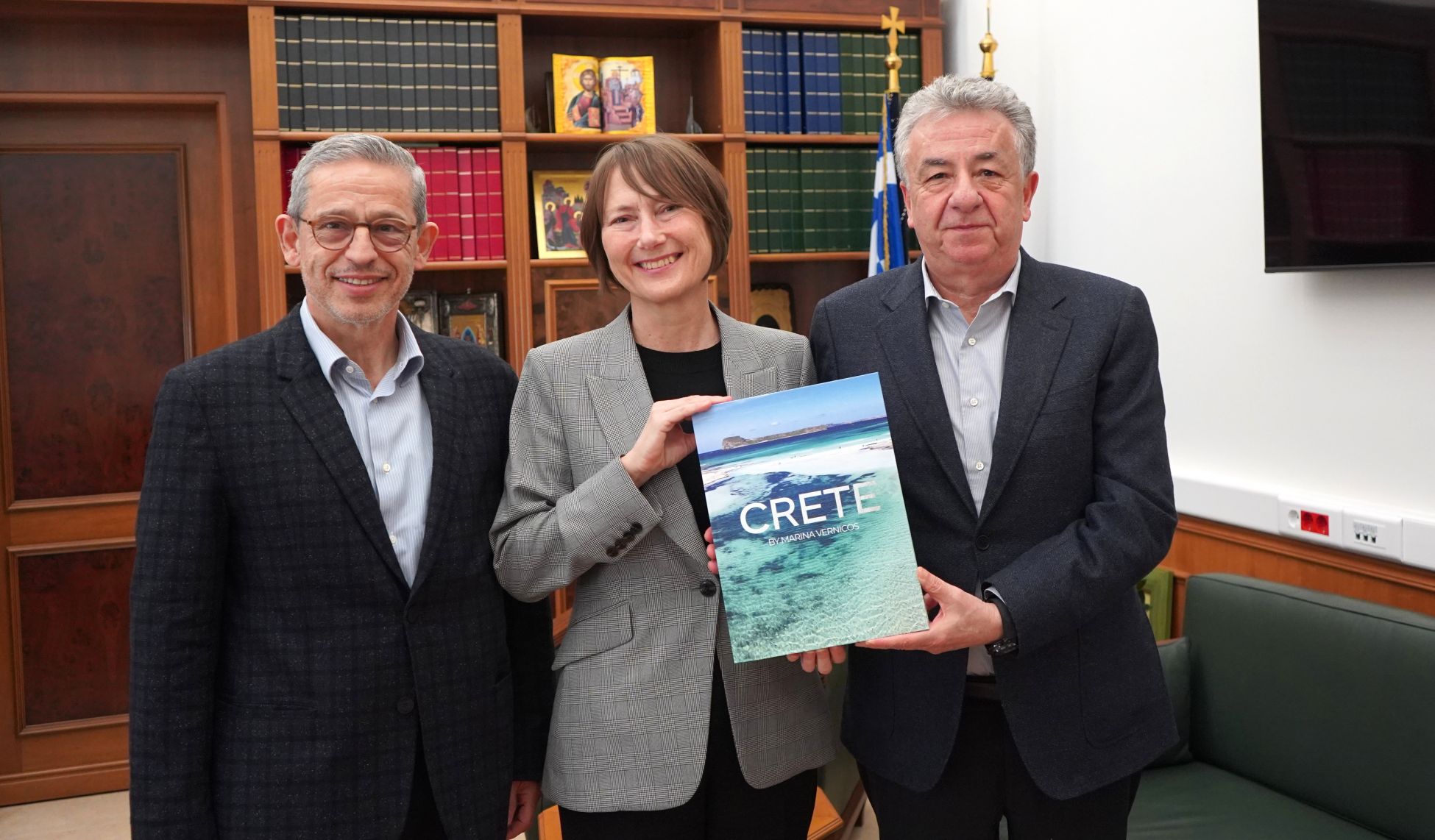 Η Πρέσβης, που ευχαρίστησε για την θερμή υποδοχή, εξέφρασε στον Περιφερειάρχη Κρήτης την αγάπη της και τον θαυμασμό της για την Κρήτη, τον πολιτισμό της, την φύση και το κλίμα της, τον διατροφικό της πλούτο, τονίζοντας ότι οι συμπατριώτες της που επιλέγουν την Κρήτη για διακοπές δεν έρχονται μόνο μια φορά αλλά επαναλαμβανόμενα.