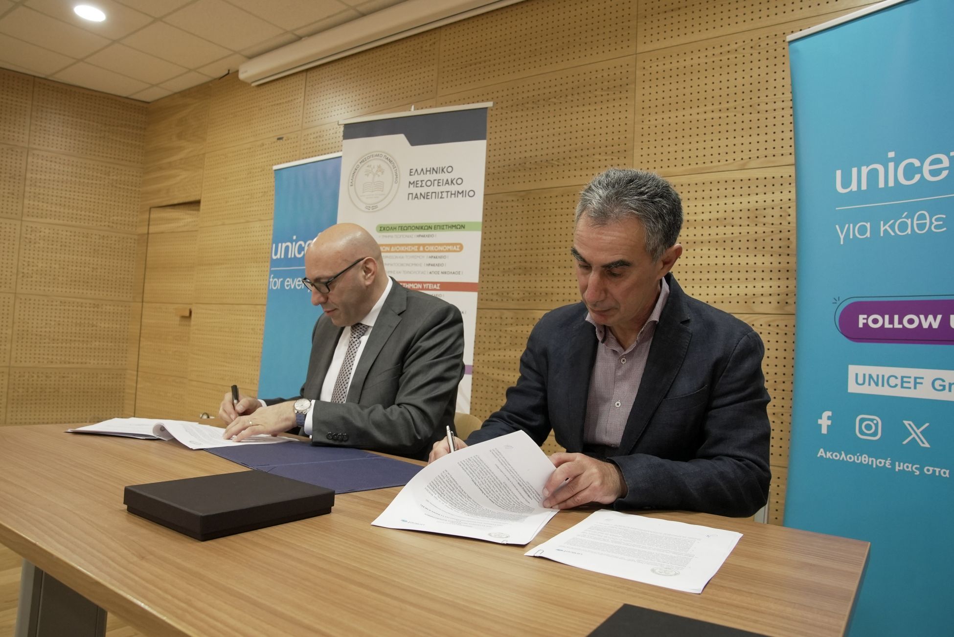 Η UNICEF και το Ελληνικό Μεσογειακό Πανεπιστήμιο υπογράφουν Μνημόνιο Συνεργασίας για την ενίσχυση των δικαιωμάτων των παιδιών