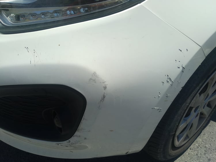 Μολις όμως ειδε το αυτοκίνητο, έχασε τη μιλιά του. «Οι ζημιές είναι μεγάλες. Έχει καταστραφεί ο μπροστινός προφυλακτήρας, ενώ και το καπό έχει ζημιά. Δαγκωματιές και γρατζουνιές παντού. Ηταν τέτοιο το μένος του σκύλου, που με τα δόντια του τρύπησε τόσο τον προφυλακτήρα, όσο και την πινακίδα του αυτοκινήτου», σημειώνει ο ιδιοκτήτης του οχήματος.