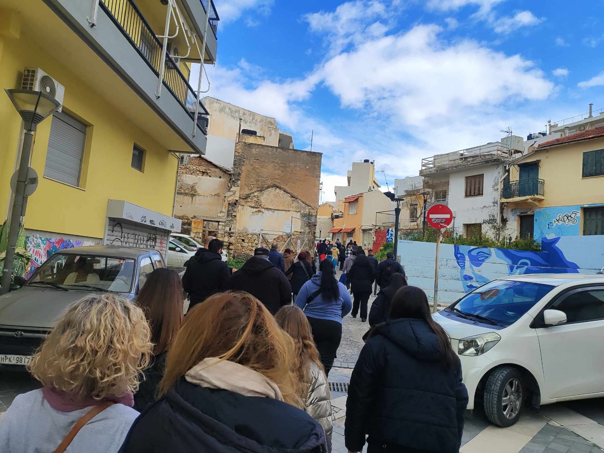 Τα καταστήματα στην πόλη κατέβασαν τα ρολά τους, με τους εμπόρους να ενώνουν τις φωνές τους με τους χιλιάδες πολίτες που ήρθαν να διαδηλώσουν από το Αρκαλοχώρι, τις Μοίρες, το Τυμπάκι, με κοινό αίτημα τη δικαίωση των 57 θυμάτων.