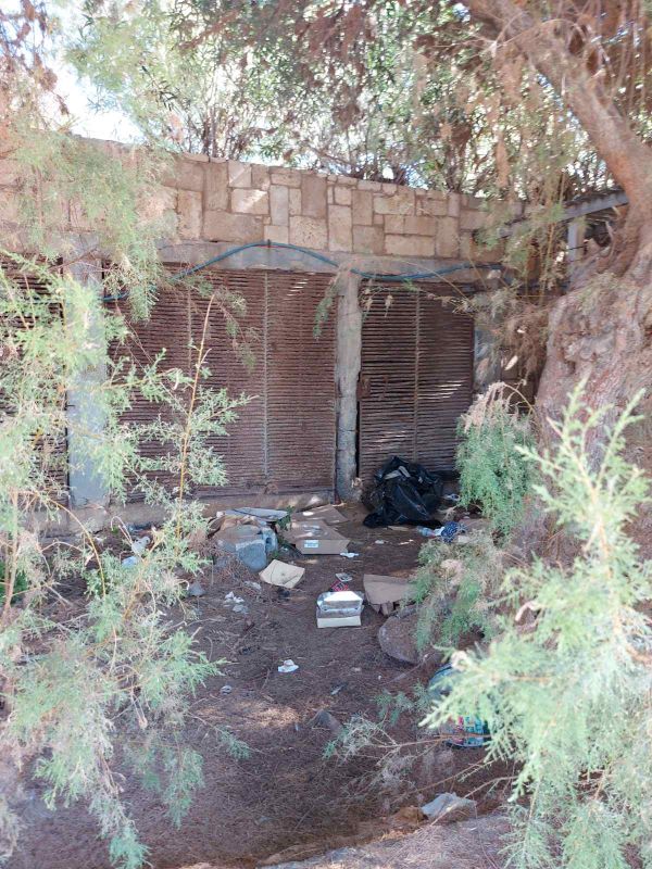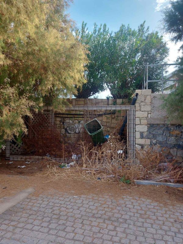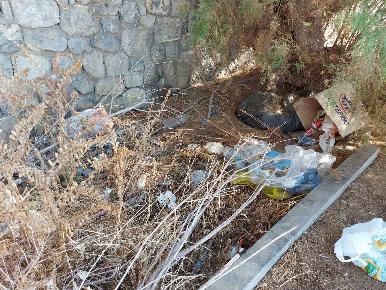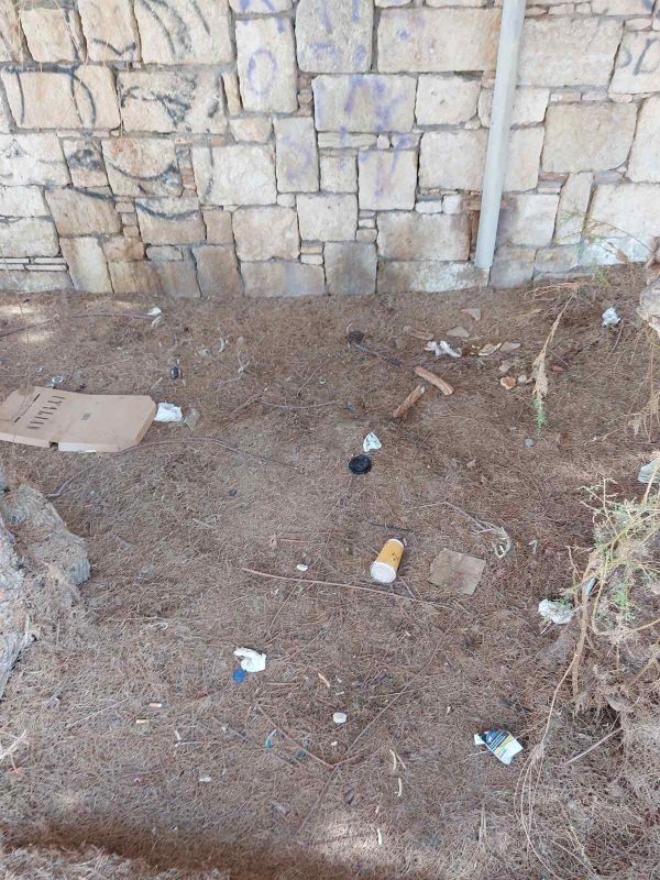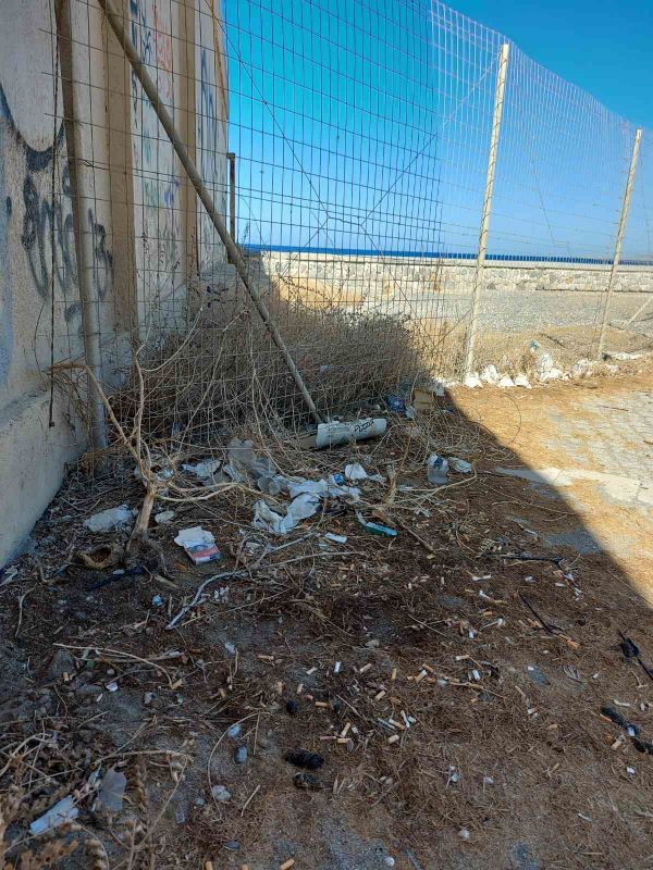 Κάθε λογής απορρίμματα, από αποτσίγαρα μέχρι και… κουτιά πίτσας, συνθέτουν ένα τραγικό σκηνικό εγκατάλειψης.