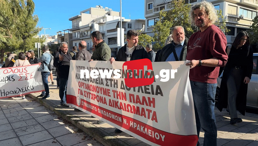 Ημέρα απεργίας σήμερα για τους οικοδόμους του Ηρακλείου και της Κρήτης γενικότερα, με τους διαμαρτυρόμενους να συγκεντρώνονται έξω από το Εργατικό Κέντρο.