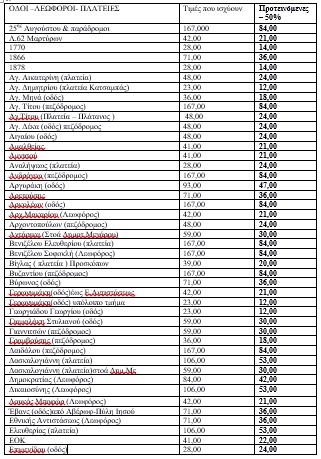- Οριζόντια μείωση των τελών κοινοχρήστων χώρων σε ποσοστό 50% για όλες τις ζώνες χρέωσης στο σύνολο του Δήμου.