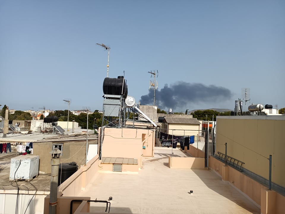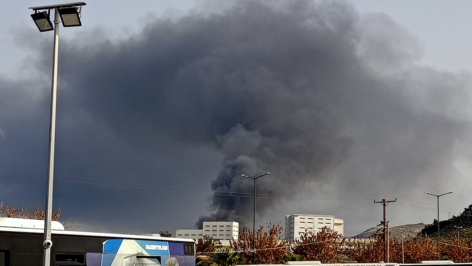 Ο μαύρος καπνός που ανεβαίνει στον ουρανό φαίνεται ακόμη και από το κέντρο της πολης