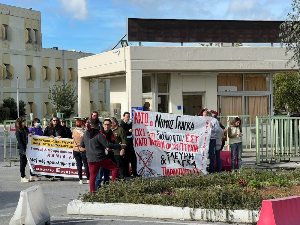 Ηράκλειο: Οι εργαζόμενοι του ΠΑΓΝΗ στην είσοδο του νοσοκομείου για...τα προβλήματα στην Υγεία