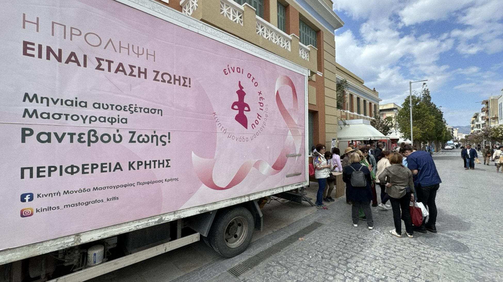 Από τις 09:00 έως και τις 13:30, έξω από την Περιφέρεια Κρήτης (Λ. Δικαιοσύνης), εγινε δωρεάν μαστογραφικός έλεγχος από την Κινητή Μονάδα Μαστογράφου της Περιφέρειας.