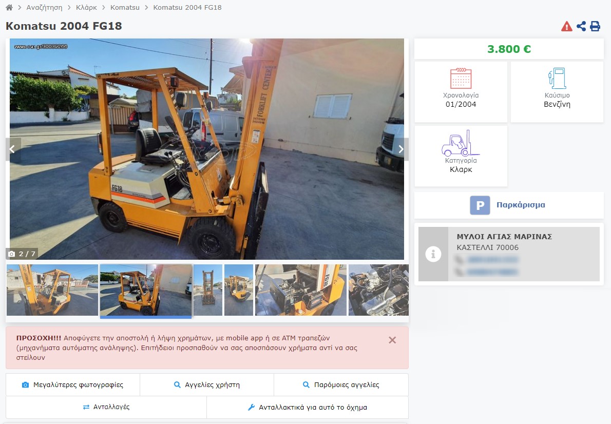Αργότερα, ο δράστης, ήθελε άμεσα να πραγματοποιήσει τη συναλλαγή, χωρίς να έχει ελέγξει το μεταχειρισμένο μηχάνημα που θα αγόραζε. Φυσικά ο επιχειρηματίας άρχισε να υποψιάζεται πως πρόκειται για απάτη. Στη συνέχεια, ο “πελάτης”, απαίτησε να του δοθεί ο κωδικός έγκρισης της τράπεζας, από το SMS που του στάλθηκε στο κινητό, με αποτέλεσμα να επιβεβαιώνονται οι υποψίες του επιχειρηματία, κλείνοντάς του, το τηλέφωνο.