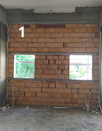 Αυτός είναι ένας από τους έξι τοίχους με τα υποστηλώματα – εδώ όντως δεν μπορούν να γίνουν μεγαλύτερα παράθυρα…