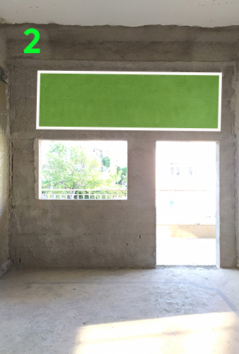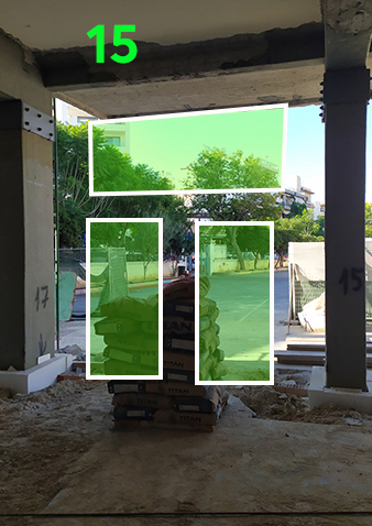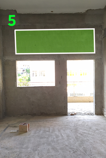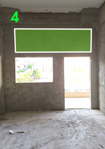 Στους υπόλοιπους τοίχους όμως, μπορούν άνετα να γίνουν επιπλέον παράθυρα ή/και φεγγίτες – (Οι πράσινοι αριθμοί αντιστοιχούν με την παραπάνω γενική φωτογραφία)