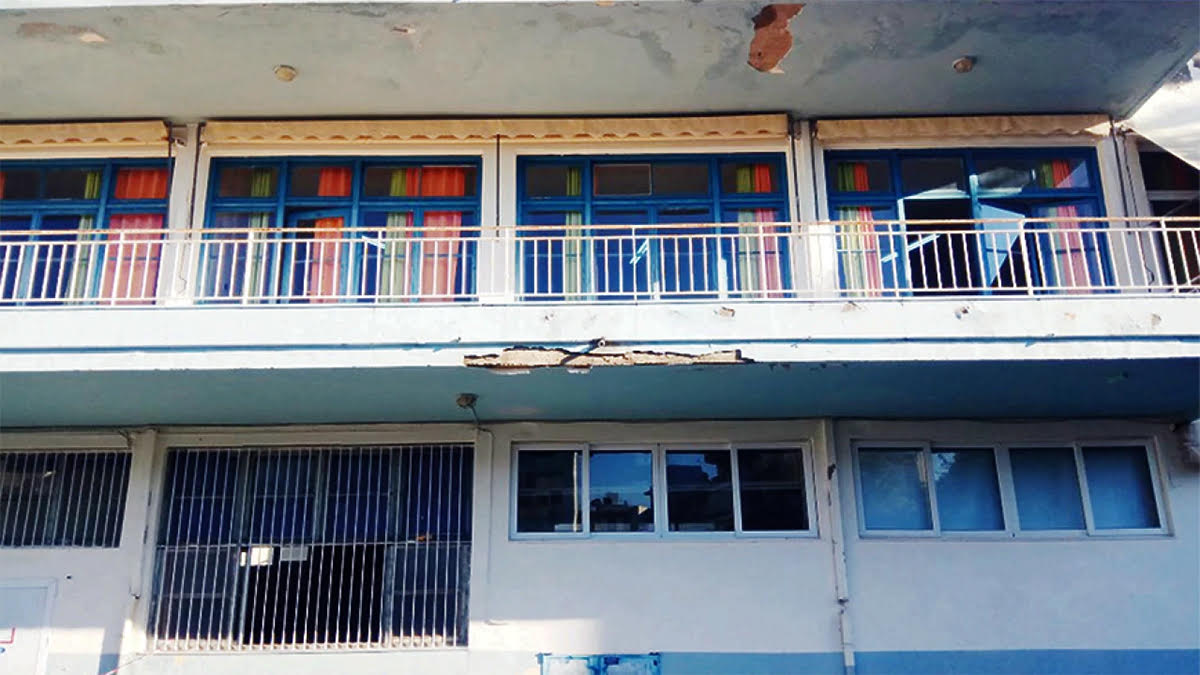Και ξανά, η σύγκριση της πρότερης εικόνας της πρόσοψης του σχολείου, με αυτή που δημιουργείται: