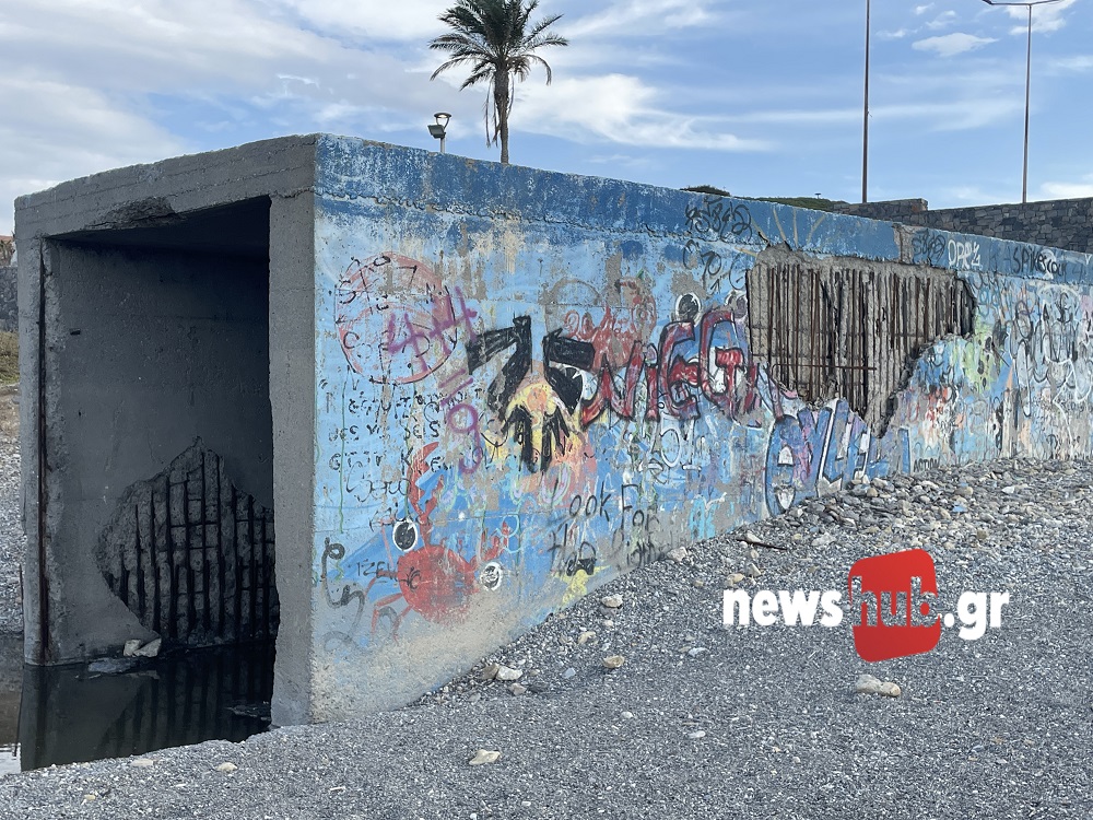 Μιλάμε για τον τσιμεντένιο αγωγό που έχει κατασκευαστεί δίπλα στο τελευταίο τμήμα των Ενετικών Τειχών στο τέρμα της οδούς Εφόδου.