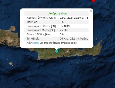 Και μετασεισμοί μετά τα 4.1 Ρίχτερ στα νότια του Ν. Ηρακλείου- Νεα δόνηση 3.5 Ρίχτερ