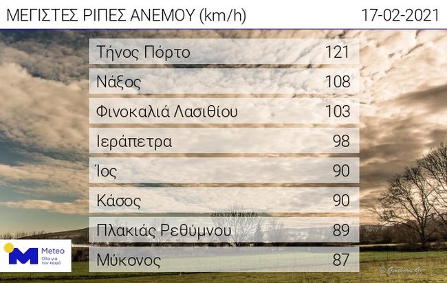 Σύμφωνα με την ανάλυση του meteo.gr η Κρήτη ήταν μια από τις περιοχές ππου χτυπήθηκαν περισσότερο με κύρια χαρακτηριστικά το μεγάλος ύψος χιονιού αλλά και τους θυελλώδεις ανέμους όπως μπορείτε να δείτε στα ακόλουθα γραφήματα: