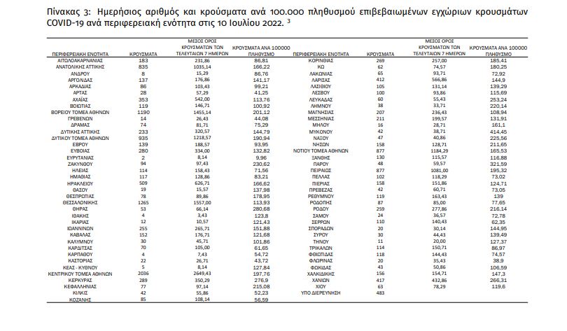 Ο Εθνικός Οργανισμός Δημόσιας Υγείας (ΕΟΔΥ) ανακοίνωσε το μεσημέρι της Κυριακής (10/07) ότι τα εργαστηριακά επιβεβαιωμένα νέα κρούσματα του κορωνοϊού στη χώρα είναι 13.306.