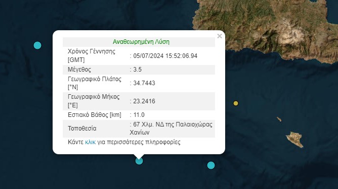 Δύο σεισμοί σημειώθηκαν σήμερα Παρασκευή 5 Ιουλίου, σύμφωνα με τα αναθεωρημένα στοιχεία που έδωσε στη δημοσιότητα το Γεωδυναμικό Ινστιτούτο.