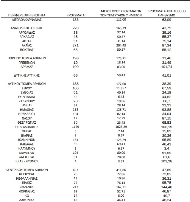 Δείτε τη γεωγραφική εξάπλωση των 7105 κρουσάτων κορωνοϊού σήμερα στην χώρα