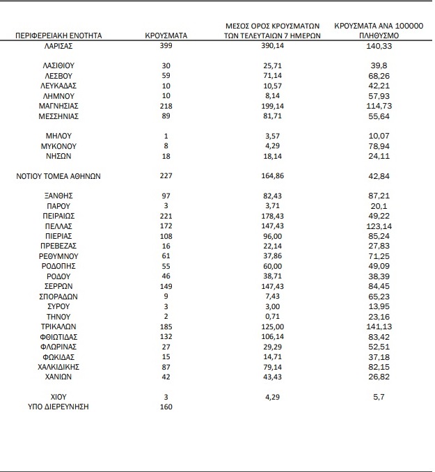 Συγκεκριμένα, στο Ηράκλειο έχουμε 104 κρούσματα, στα Χανιά 42, στο Ρέθυμνο 61 και στο Λασίθι 30.