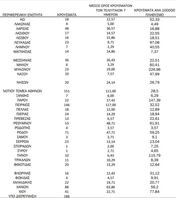 Την ίδια ώρα οι νοσηλείες στα νοσοκομεία της Κρήτης διαμορφώνονται ως εξης: