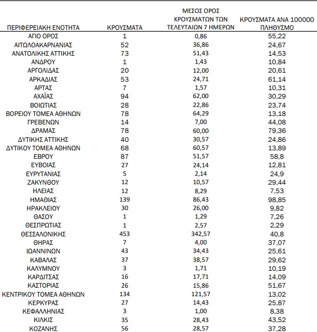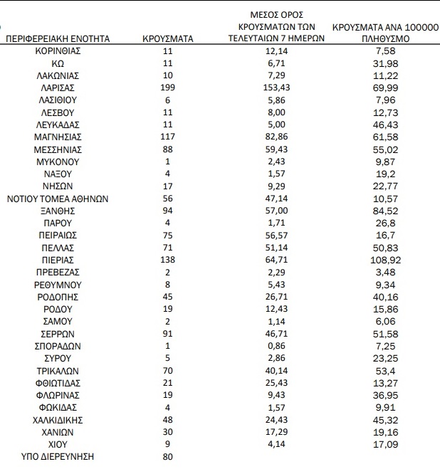 Ηράκλειο και Χανιά μετράνε από 30 κρούσματα η κάθε περιφερειακή ενότητα, ενώ στο Ρέθυμνο καταγράφηκαν 8 μολύνσεις και στο Λασίθι άλλες 6.