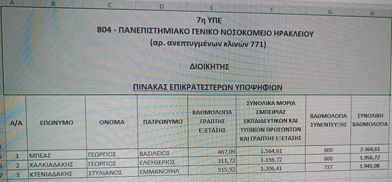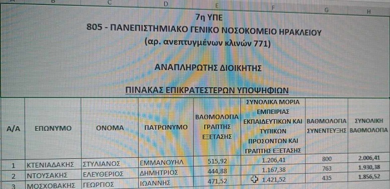 Kρήτη: Αναρτήθηκαν οι πίνακες με τους επικρατέστερους υποψήφιους διοικητές των νοσοκομείων