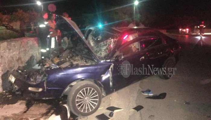 Από τη σύγκρουση τραυματίστηκε σοβαρά ο οδηγός και η συνοδηγός, οι οποίοι χρειάσθηκαν τη συνδρομή της πυροσβεστικής για να απεγκλωβιστούν από το όχημα.
