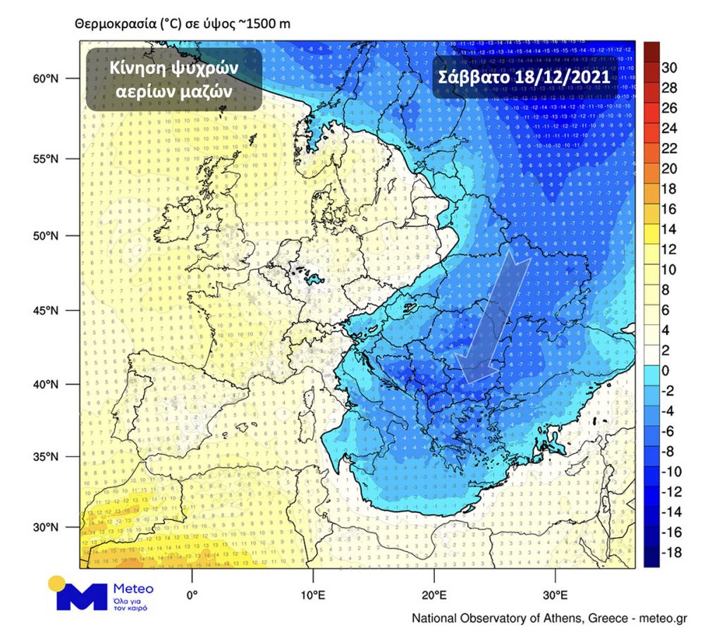 Για πολύ Ψυχρές αέριες μάζες από τη Βόρεια Ευρώπη που θα επηρεάσουν την Ελλάδα φτάνοντας μέχρι και την Κρήτη κάνει λόγο το meteo.gr.