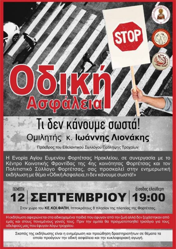 «Οδική Ασφάλεια – Τι δεν κάνουμε σωστά!». Μια ενημερωτική εκδήλωση στο Ηράκλειο με εξαιρετικό ενδιαφέρον. Η Κρήτη συνεχίζει δυστυχώς να μετράει νεκρούς στους δρόμους της, οικογένειες να ντύνονται για πάντα στα μαύρα και η μακάβρια λίστα των θυμάτων της ασφάλτου να να μεγαλώνει δραματικά.
