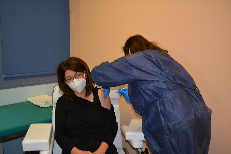 Αγγελική Δαμιανάκη ιατρός Πνευμονολόγος εμβολιαζόμενη, με Καστρνάκη Στυλιανό Δ/ντή ΤΕΠ