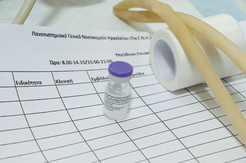Οι εμβολιασμοί υγειονομικών στο Νοσοκομείο Χανίων αρχισαν επίσης από σήμερα το πρωί, με γιατρούς και νοσηλευτές που υπηρετούν στην Μονάδα Εντατικής Θεραπείας και την κλινική Covid.