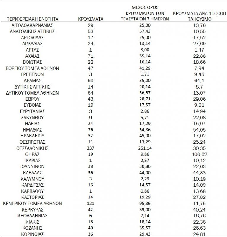 Συνολικά σε όλη την χώρα ανακοινώθηκαν 2555 κρούσματα η γεωγραφική εξάπλωση των οποίων έχει ως εξής: