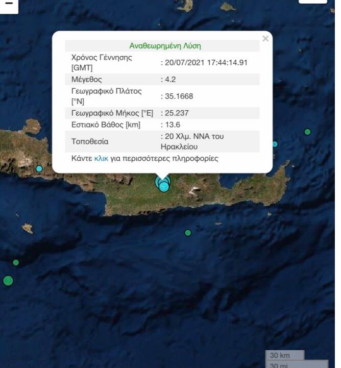 Καθημερινό φαινόμενο είναι πλέον οι σεισμοί στην Κρήτη με νέα σεισμική δόνηση να εκδηλώνεται πριν από λίγο και ειδικότερα στις 20.44.