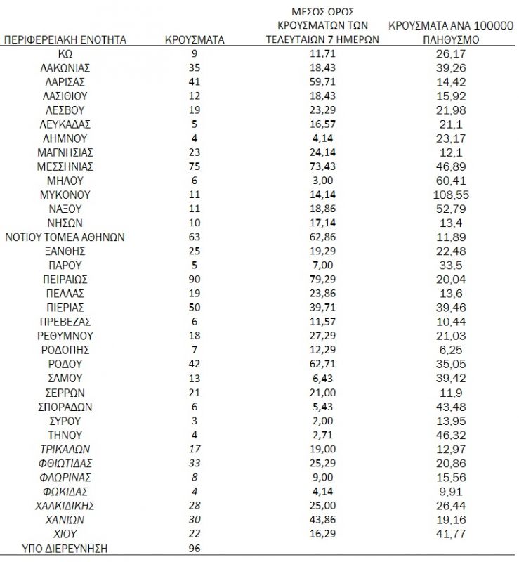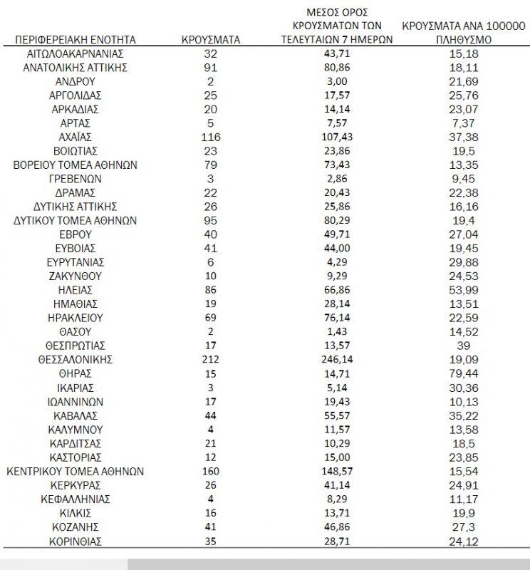 Αναλυτικά τα 2343 κρούσματα που ανακοινώθηκαν σήμερα από τον ΕΟΔΥ σε όλη την επικράτεια κατανέμονται ως εξής: