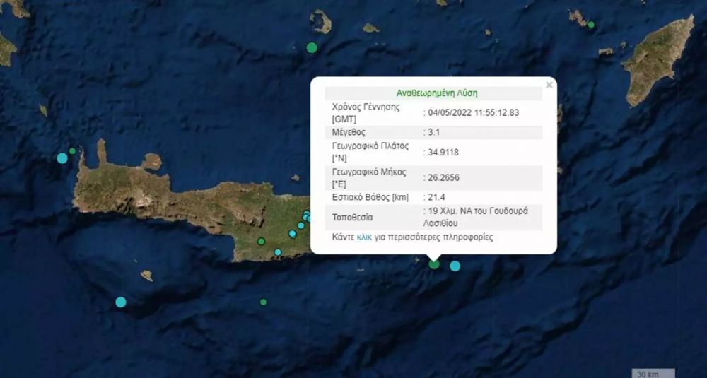Νέο σεισμό είχαμε στην Κρήτη νωρίτερα με το επίκεντρο αυτή τη φορά να βρίσκεται στη θαλάσσια περιοχή του Λασιθίου.