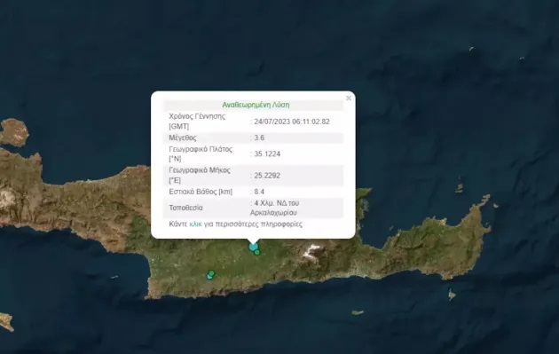Κρήτη: Σεισμός 3,6 ρίχτερ ταρακούνησε το Αρκαλοχώρι