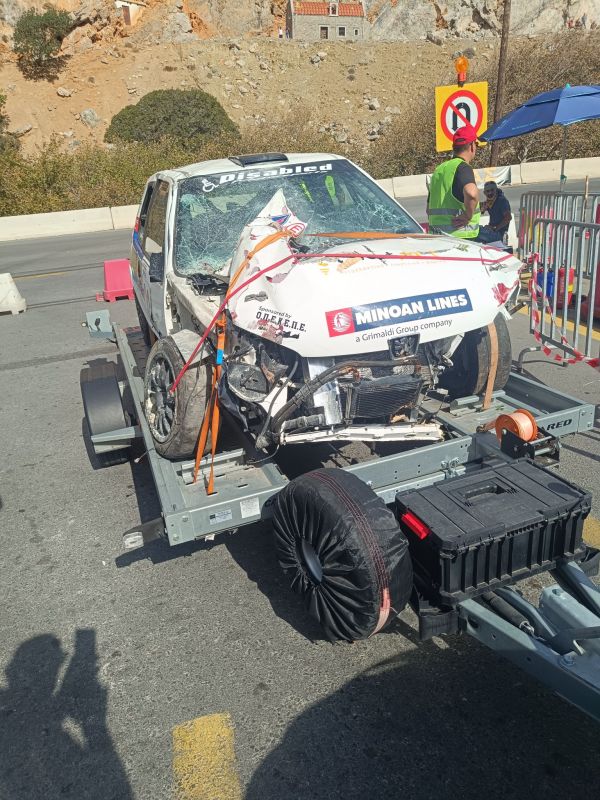 Η σύγκρουση ήταν σφοδρή αλλά τα μέτρα προστασίας του αυτοκινήτου χάρη στον κατασκευαστή του Γιωργος Πουλακης λειτούργησαν άψογα.