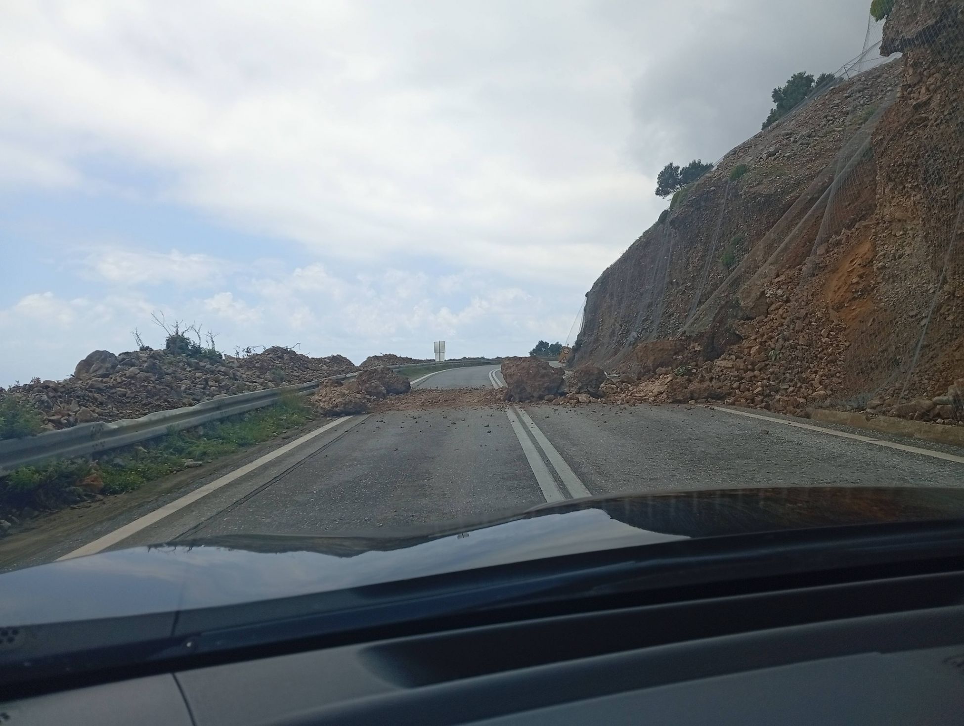 Μάλιστα οι βράχοι και χωμάτινοι όγκοι έπεσαν στο δρόμο παρά το γεγονός του οτι στο σημείο έχει τοποθετηθεί προστατευτικό δίχτυ