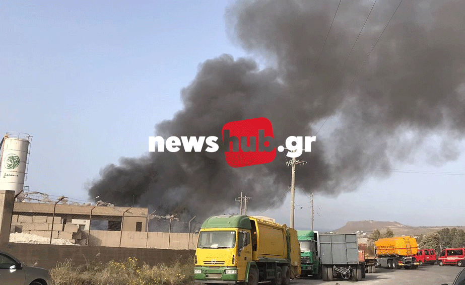 Μάχη με τις φλόγες από τους πυροσβέστες στην ΒΙΠΕ Ηρακλείου – Ακούστηκαν και εκρήξεις (φωτογραφίες +βίντεο)